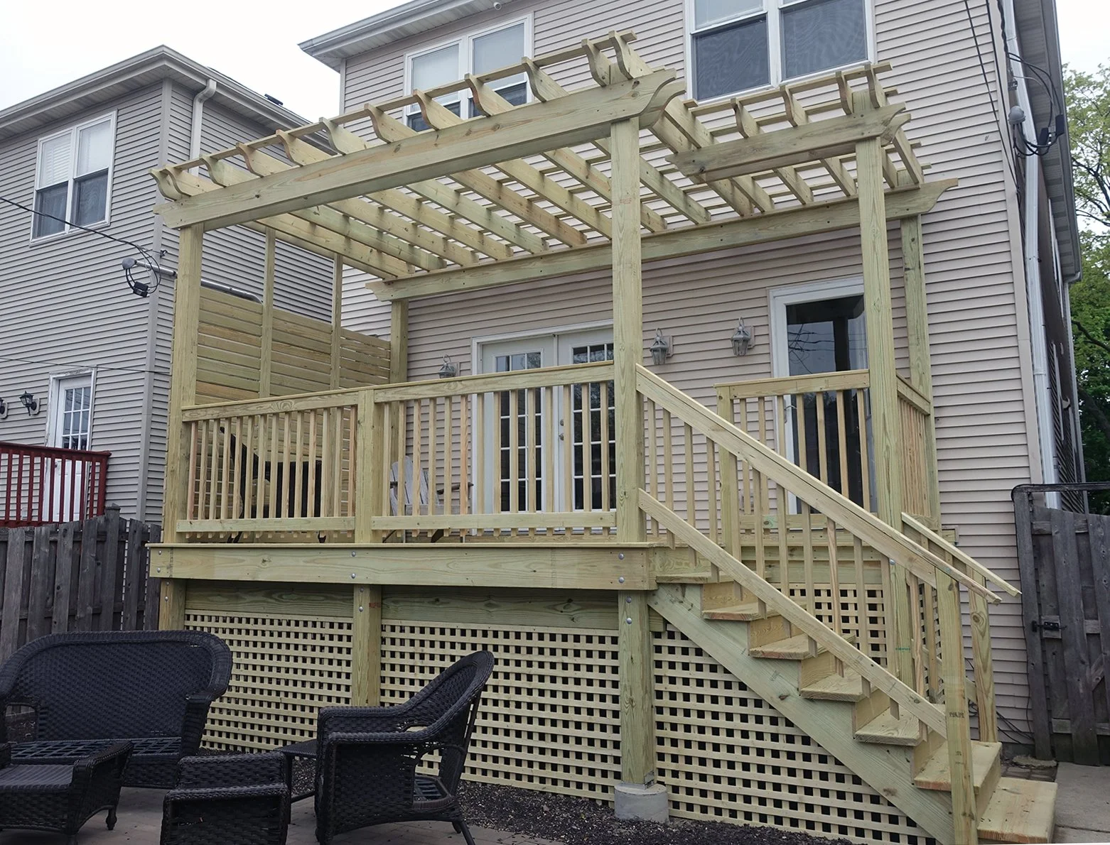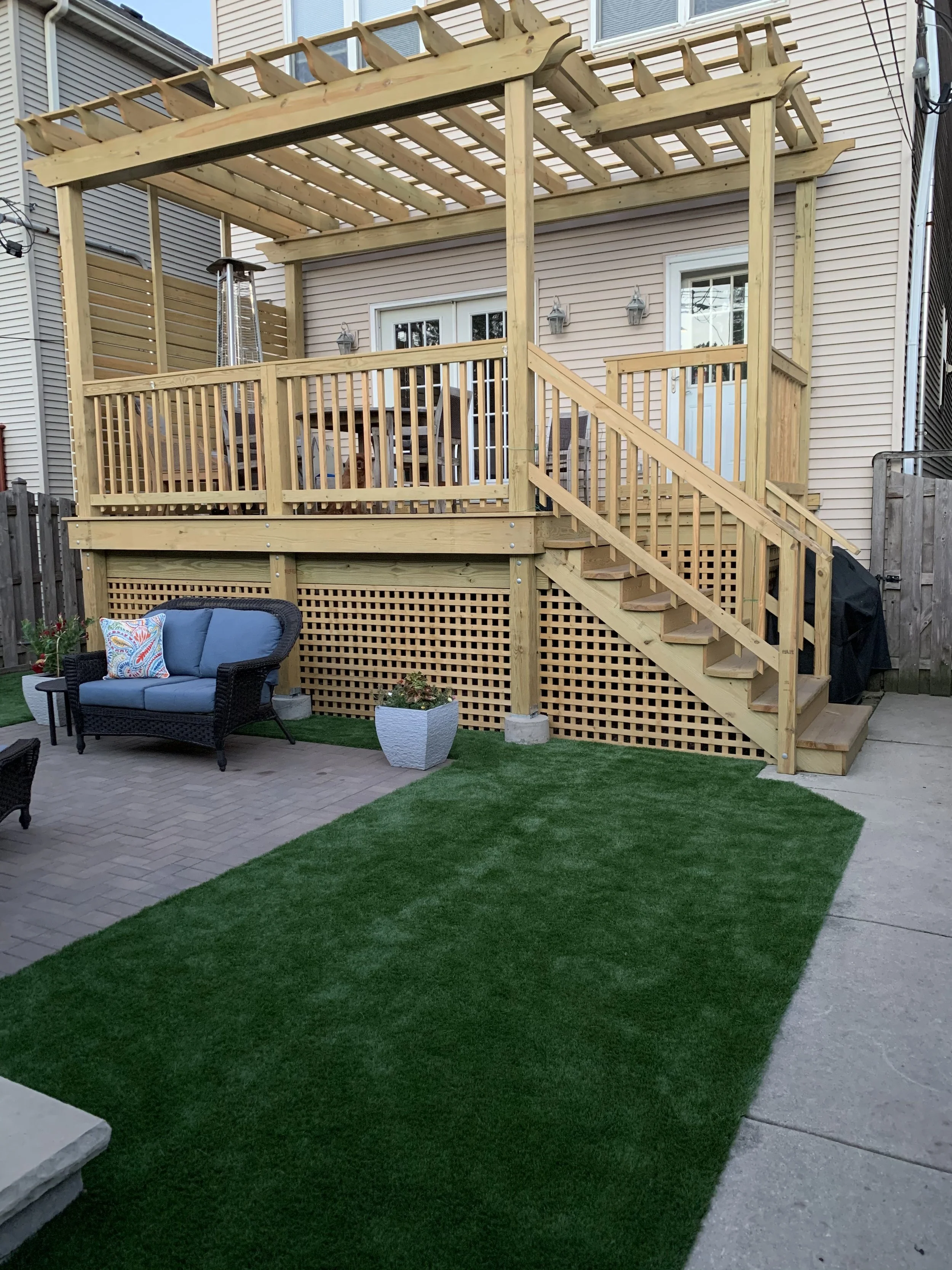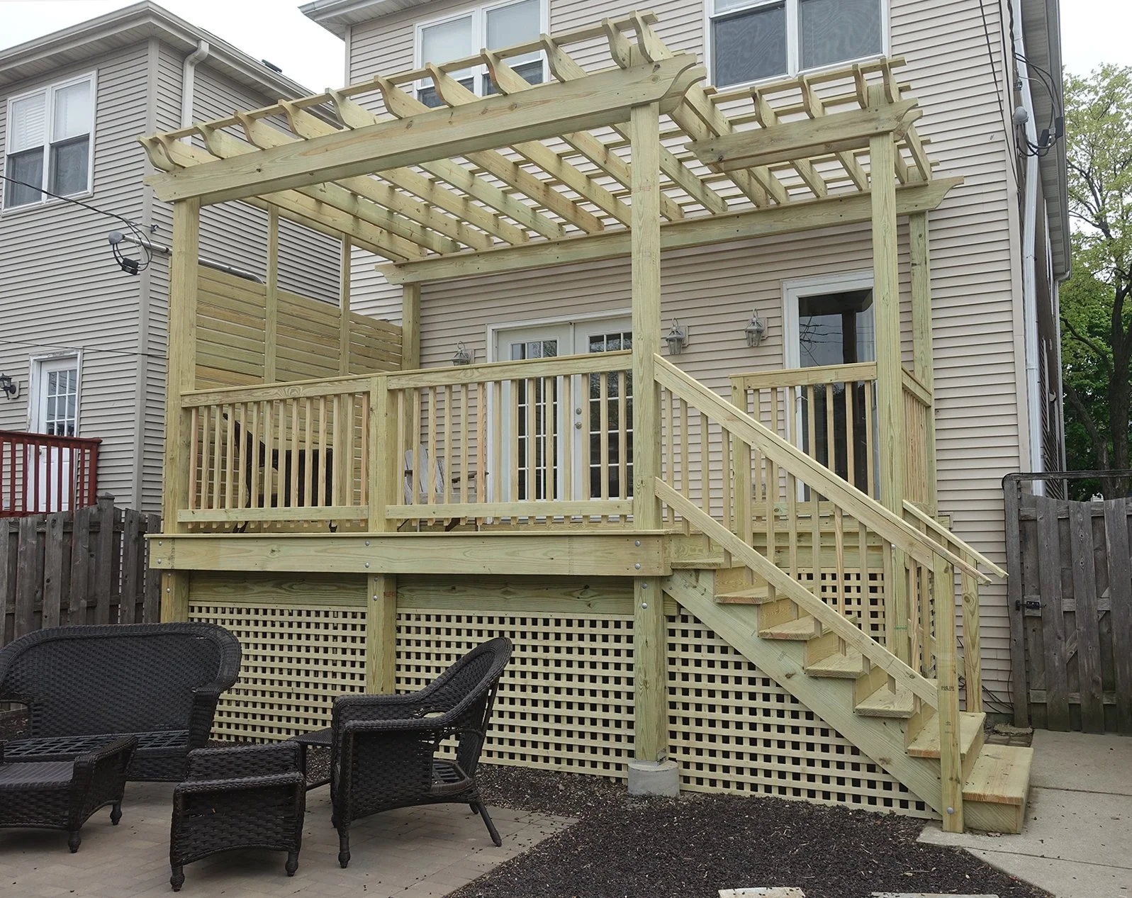Our favorite project for the month of July The customer was extremely pleased with the quality of work we provided and couldn't take the smile off of his face. He was very happy with the way the project turned out and this newly built rear porch with pergola is ready for a warm Chicago summer season!